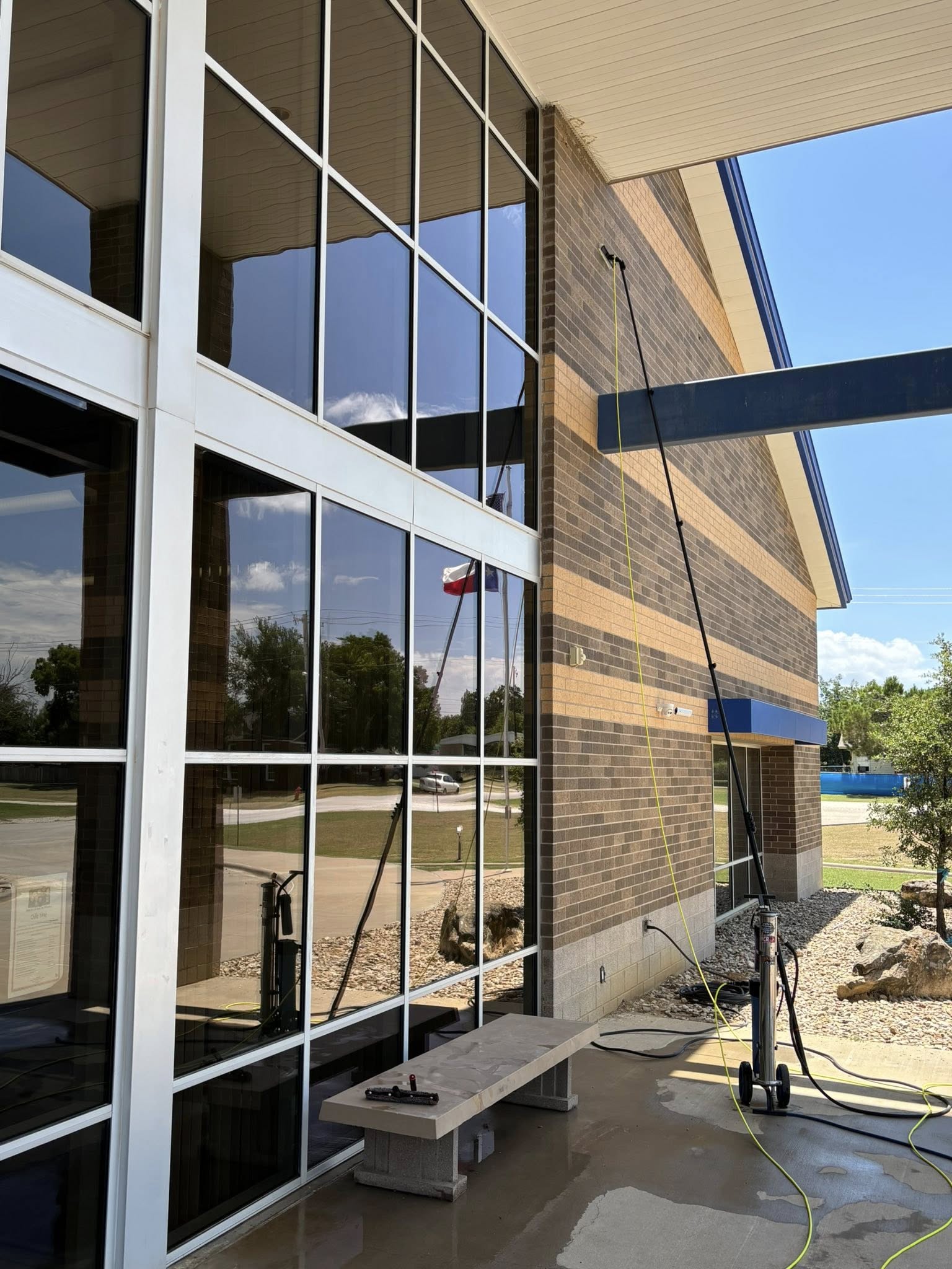 We use advanced equipment like water-fed poles and purified water systems for safe, streak-free results, even on hard-to-reach windows.